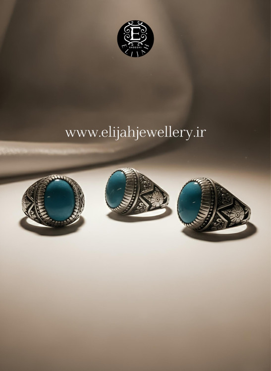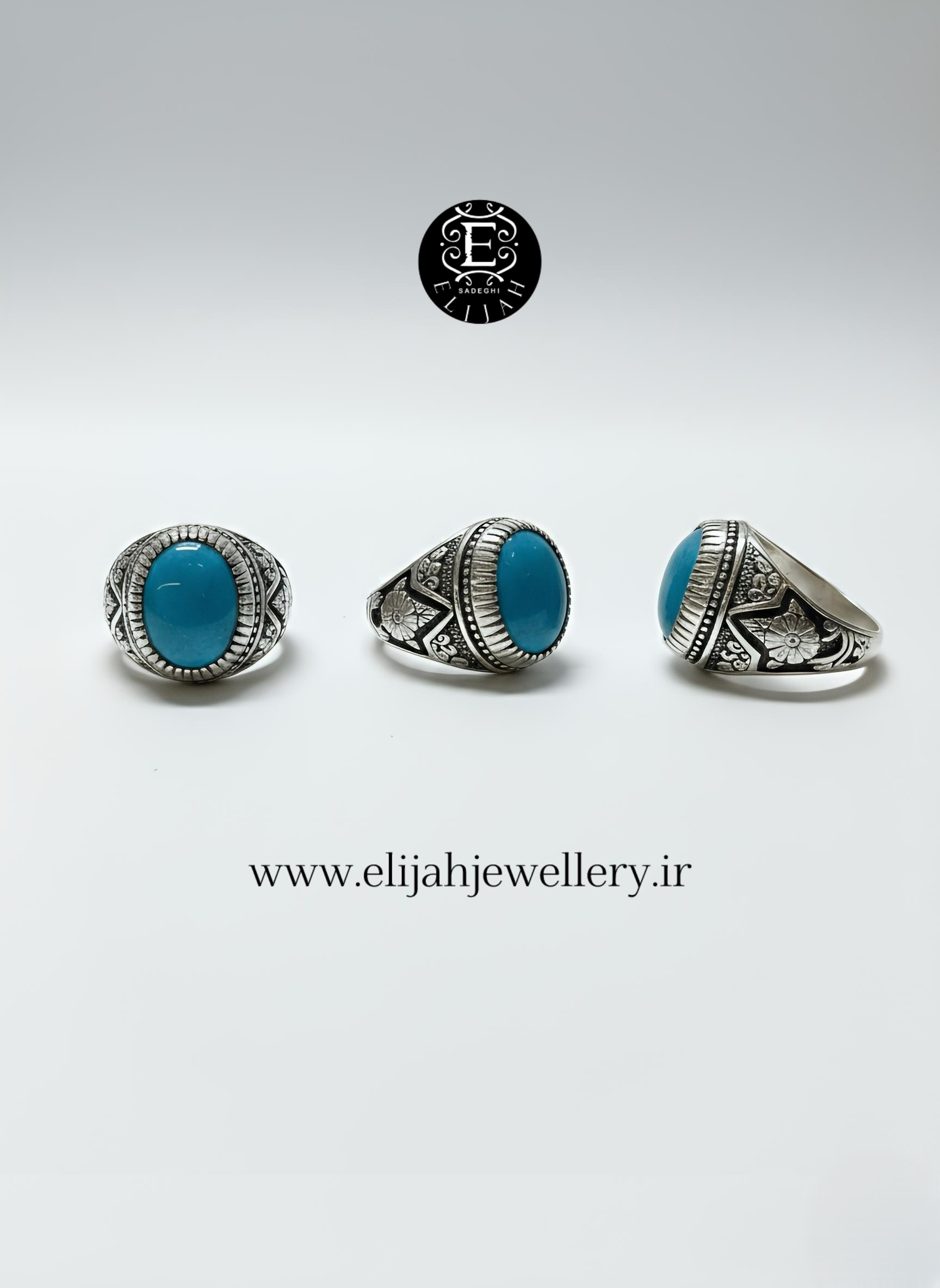 فیروزه کلکسیونی صاف با رکاب کاملا دستساز قلم زنی شده ویژه